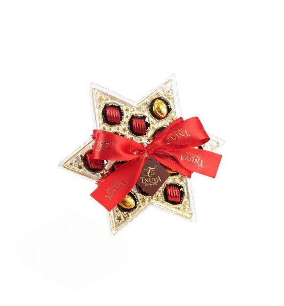 CX ESTRELA COM BOMBONS CREME DE AVELÃ E MORANGO P/ PRESENTE- 160 GR(13 UNID.)