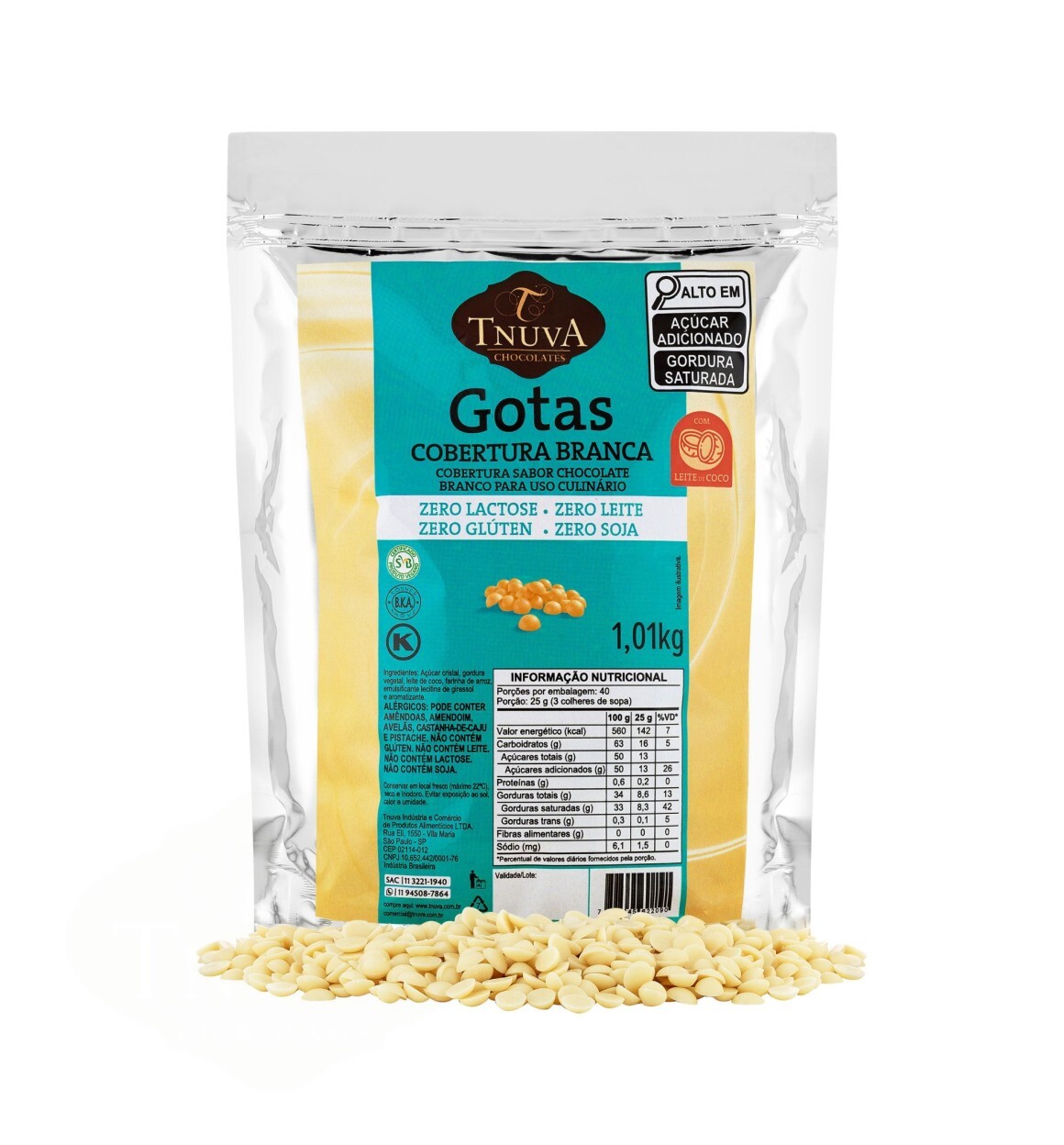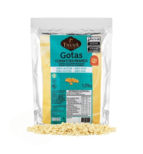GOTAS COBERTURA SABOR CHOCOLATE BRANCO USO CULINÁRIO 1,01KG - Zero Leite, Zero Glúten, Zero Soja, 100% Vegano